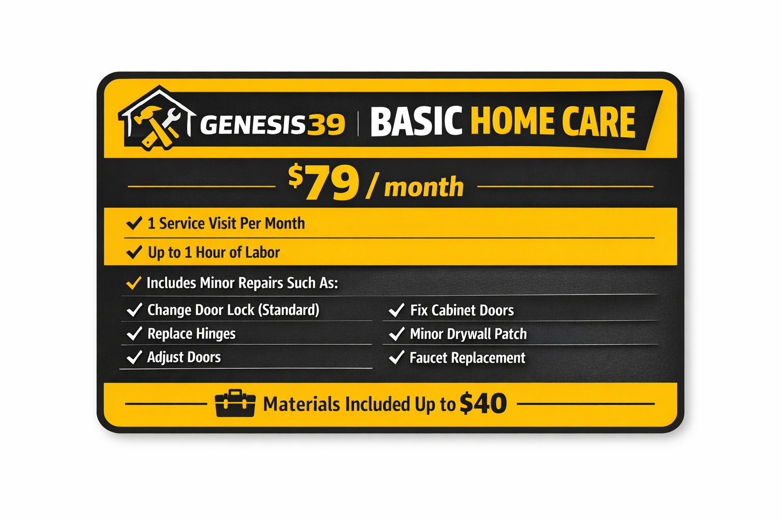 β Includes minor repairs such as: